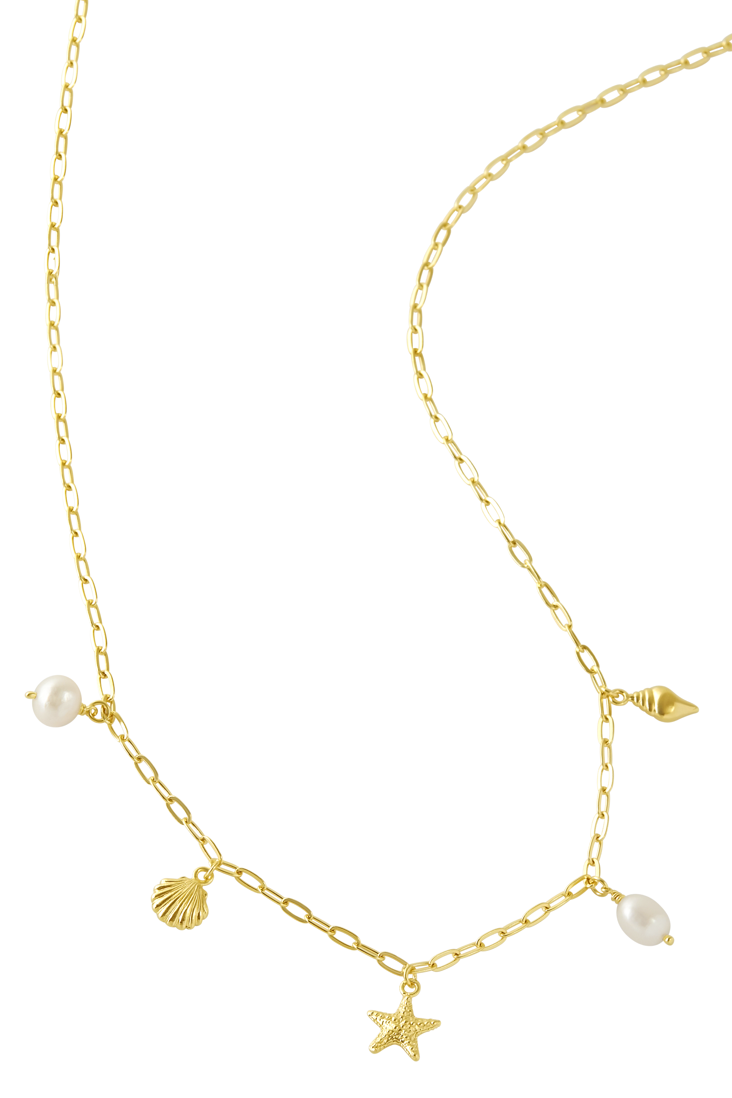 Oceanic Charm Pearl Necklace Gold